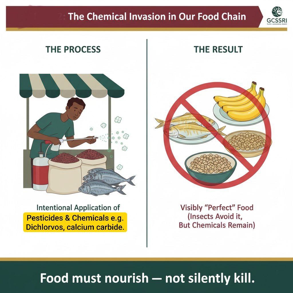 While greed plays a role, GCSSRI’s field interviews and community studies reveal that many food vendors act out of ignorance, not malice. To them, the pesticide that kills weevils in storage is a form of “insurance.” They have no scientific understanding of how that same chemical, when absorbed into food, destroys human nerve cells or leads to cancer.